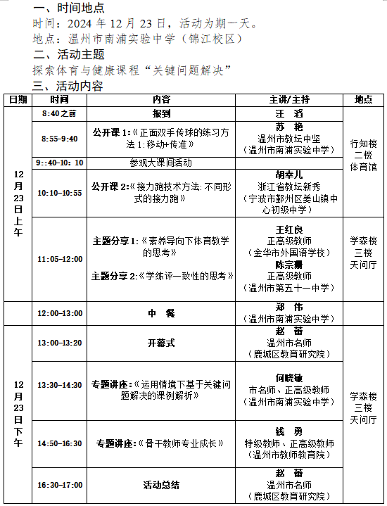 关于举行温州市何晓敏体育“名师送教”工作室第10次活动的通知